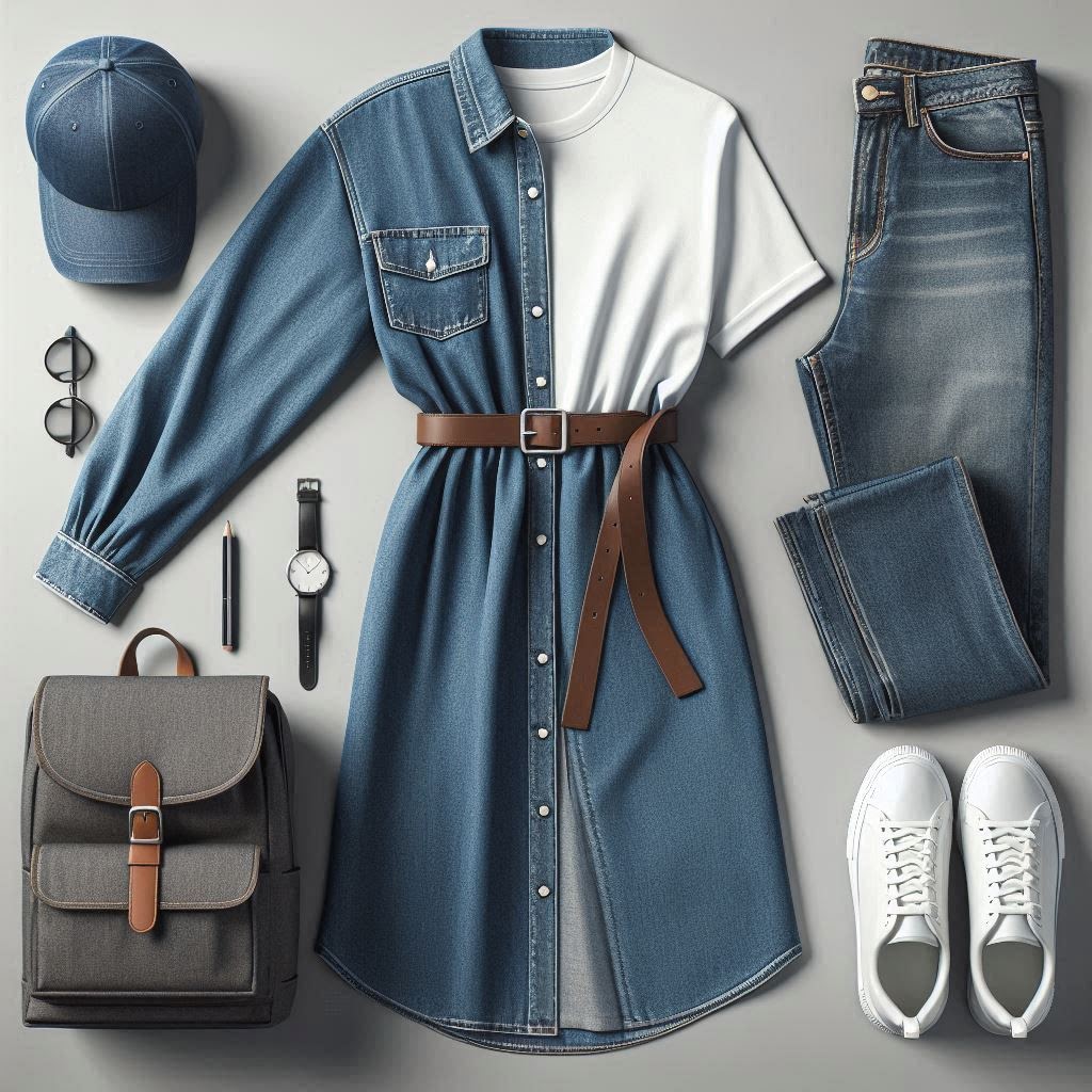 Rocking the Look: Channel effortless denim chic with this stylish look. The belted denim shirt dress creates a cool and confident silhouette, while the cinched waist flatters your figure.